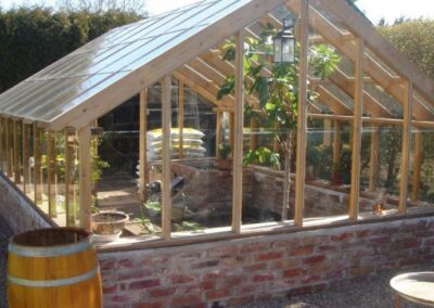 Ditt växthus kan se ut precis hur du vill. Vi jobbar uteslutande i kärnfuru men du väljer utseendet på glas, grunden, trädetaljer m.m. så att ditt nya växthus ska passa in i din utemiljö.